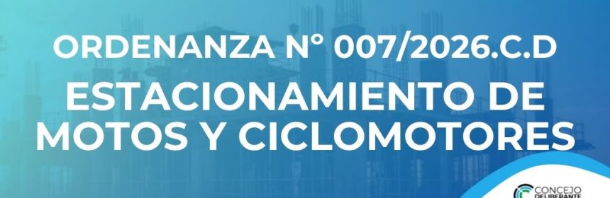 ESTACIONAMIENTO DE MOTOS Y CICLOMOTORES Allen, 26 de Marzo de 2026. VISTO: Las Ordenanzas Municipales Nº 045/16.C.D. y 096/24.C.D.; y CONSIDERANDO: Que la Ordenanza Municipal 096/24.C.D. en su Articulo 1° modifica el Artículo 4° de la Ordenanza Municipal 045/16.C.D. referente al estacionamiento de motos y ciclomotores; Que se hace necesario ampliar los lugares habilitados de uso exclusivo