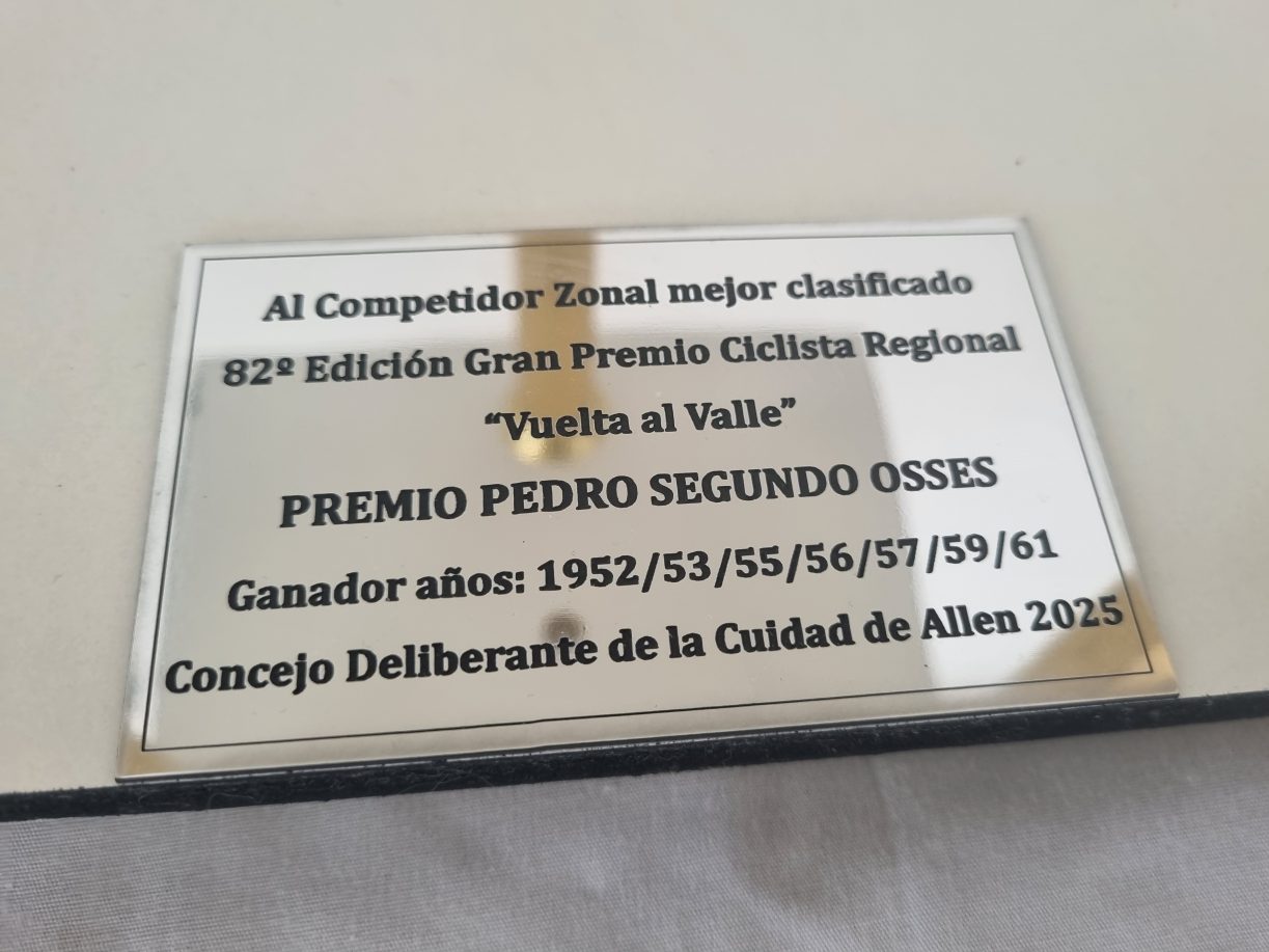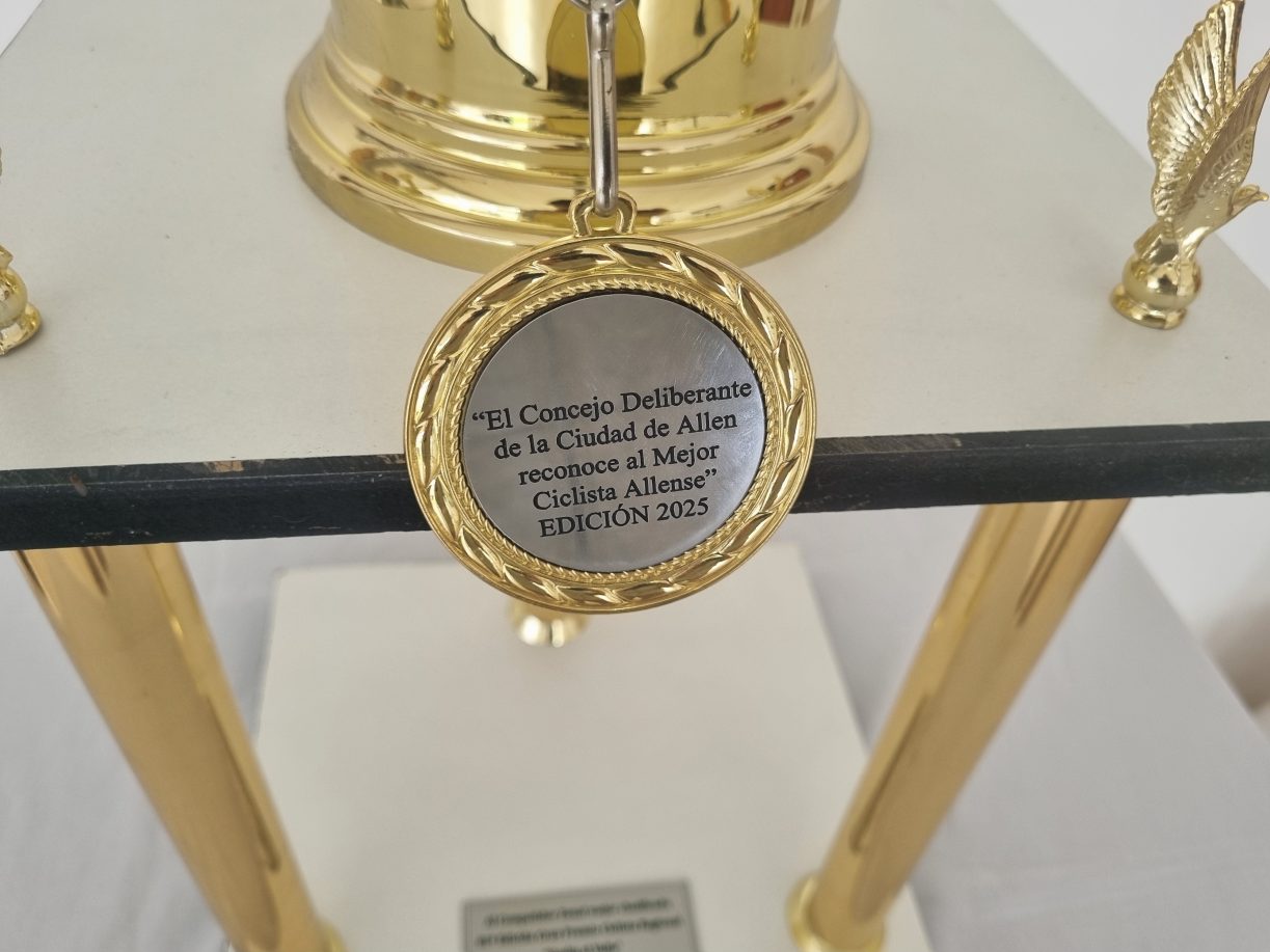 Junto al trofeo, se exhibe la medalla con la que esta institución distinguirá al “mejor ciclista allense” de la edición 2025.
