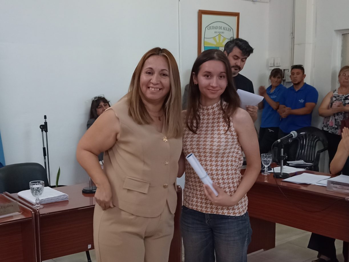 En la última Sesión Ordinaria del período legislativo 2025, el Concejo Deliberante de Allen entregó certificados a los egresados de nivel medio con los mejores promedios de cada institución educativa de nuestra ciudad.